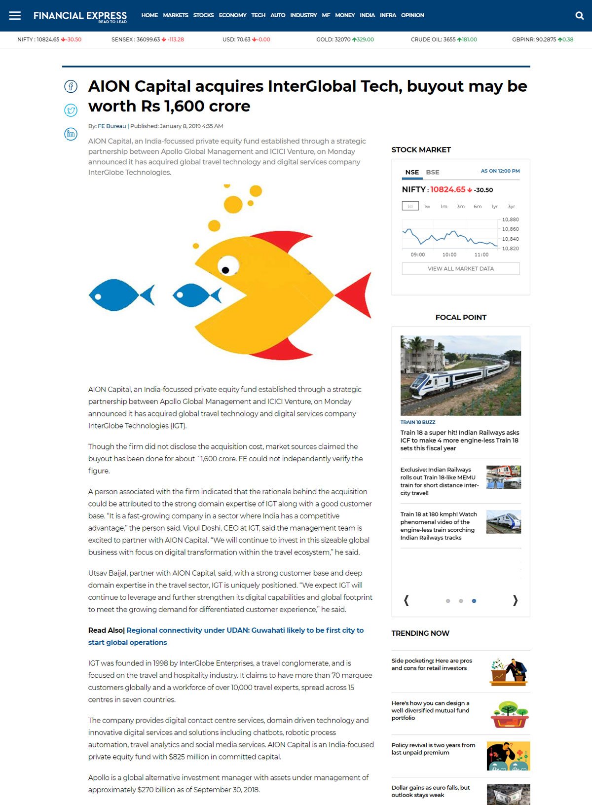 NewsAION Capital acquires InterGlobal Tech, buyout may be worth Rs 1,600 croreClick here to read full news Thought Leadership anemptytextlline Contact Us anemptytextlline