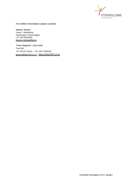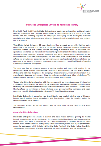 Press ReleaseInterGlobe Enterprises unveils its new brand identity April 15, 2011 Thought Leadership anemptytextlline Contact Us anemptytextlline